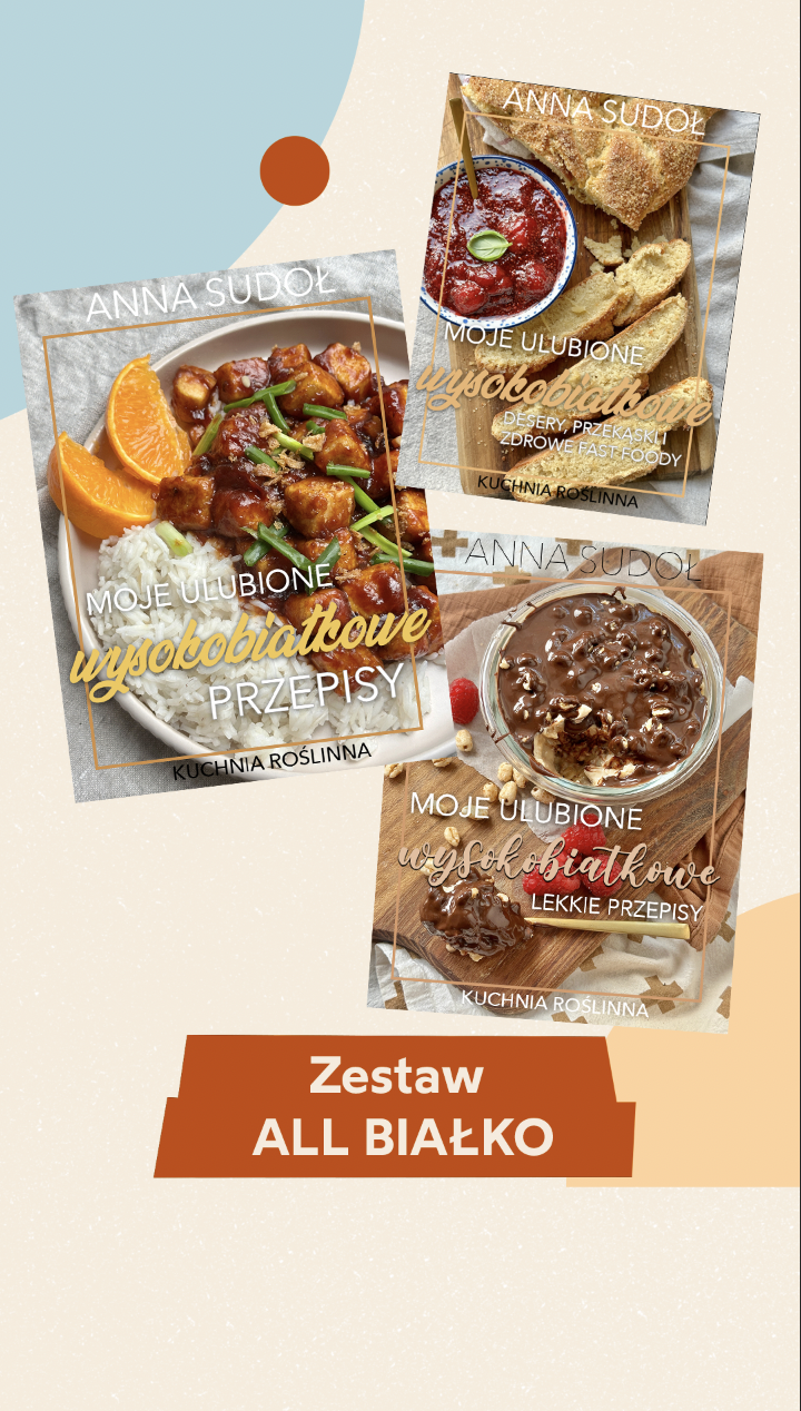 100% wegańskie, wysokobiałkowe przepisy. W tych ebookach znajdziesz wszystko to czego potrzebujesz: śniadania, obiady, kolacje, zupy i potrawki, desery, przekąski i wiele więcej! Bez problemu będziesz w stanie ułożyć sobie wysokobiałkowe menu na cały dzień!